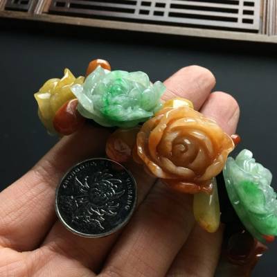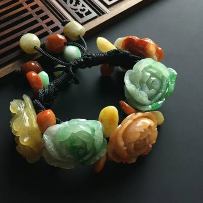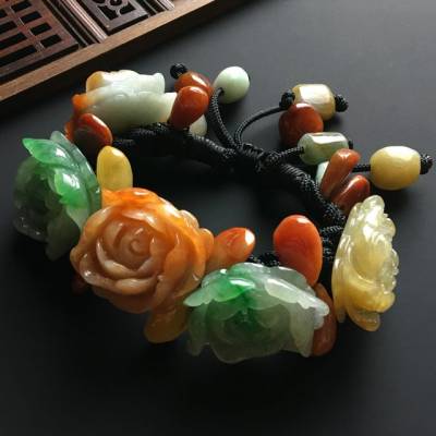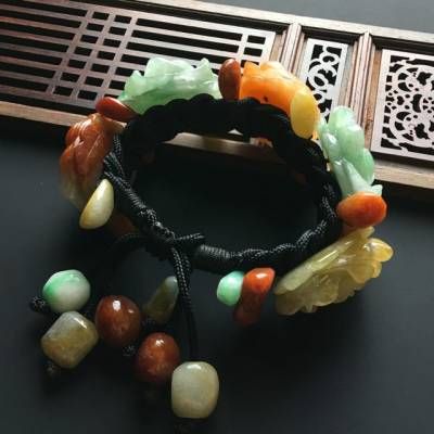 25-20-13寸巧雕多彩百财天然翡翠手链