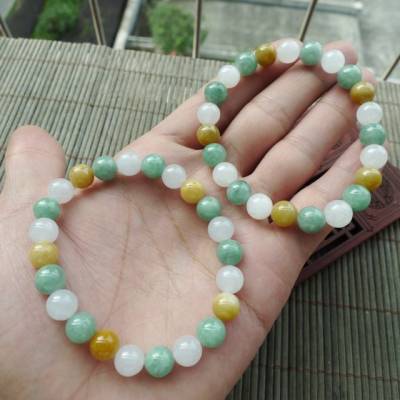 糯冰种三彩百财翡翠手链 12颗