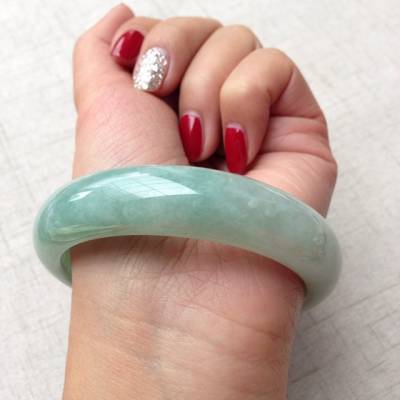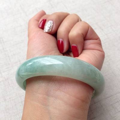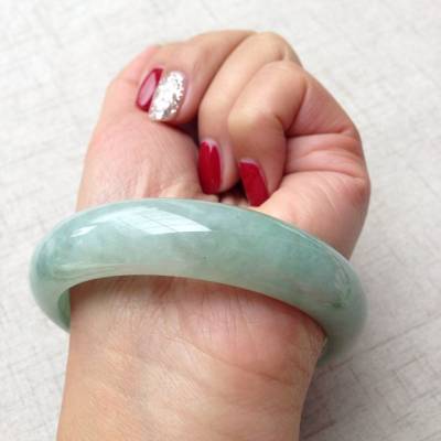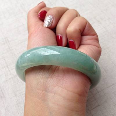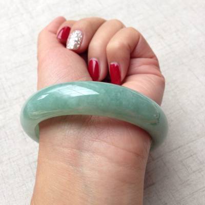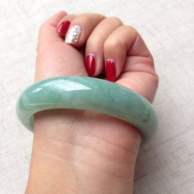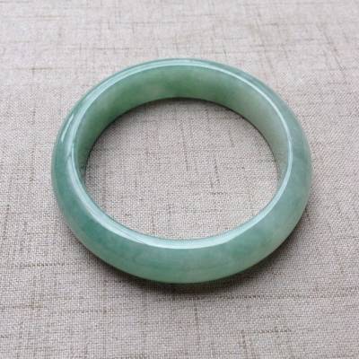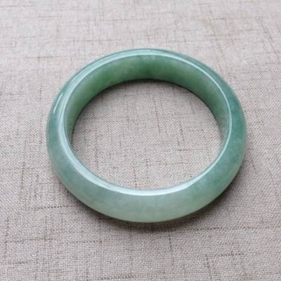 翡翠A货糯种飘绿手镯 58.5圈圆条手镯