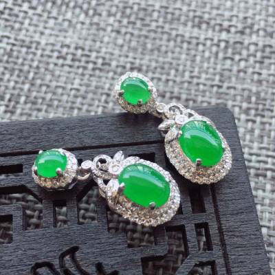 冰种满绿 翡翠耳坠 色泽鲜艳种水足